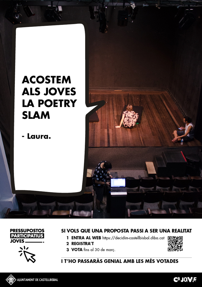 "Una poetry slam consisteix en fer un recital de poesia però diferent, a grans termes és teatralitzar la poesia. Estaria bé portar a gent que hi enten sobre el tema perque puguin fer una actuació/demostració.